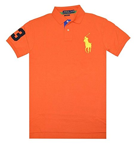 Polo Ralph Lauren Mens Custom Fit Big Pony Mesh Polo Shirt - L - Orange