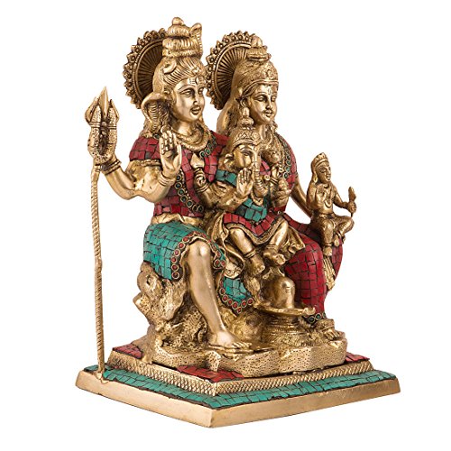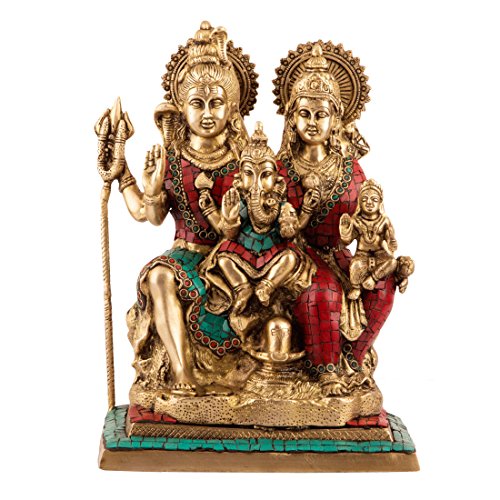 12.5" Large Shiva Family Statue Hindu Lord Shankar Ganesh Parvati Brass God Shiva Figurine