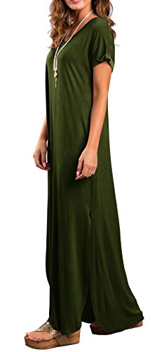 Short sleeve, V neck and Backless, Long dress,Pocket,Maxi dress, loose fit, the dress is very loose, oversized.If you don't want it very loose, then choose one or two sizes down.