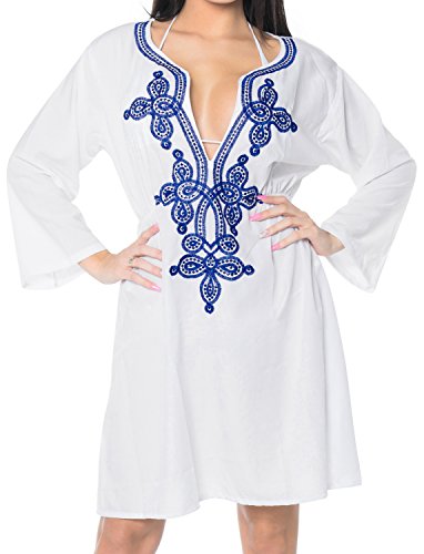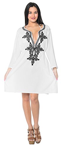 -. Feature : do YOU want COVER UPS in other colors? Red || Pink || Orange || Violet || Purple || Yellow || Green || Turquoise || Blue || Teal || Black || Grey || White || Maroon || Brown || Mustard || Navy - Please click on ✒ BRAND NAME ♚ LA LEELA ♚ above ➤TITLE OR Search for ➤ "LA LEELA" in Search Bar of Amazon ➤ / ONE SIZE FITS THE MOST : US Size : From Regular 8 (M) TO 14 (L) ➤ UK Size : 10 - 16 BUST : 40 Inches [101 cms ]➤ Length : 35 Inches [ 88 cms ] / SAVE MONEY Multi-Purpose Use ✠ CAN BE PAIRED WITH ✠ Jeans ✠ Shorts ✠ Pants ✠ Capris ✠ Skirts ✠ Harem ✠ Women Bot✠ Pajamas ✠ Palazzo ✠ Wraparound COMFORTABLE in Hot Days --> BEAUTIFUL Blouse has SOFT, Comfortable & LIGHT FABRIC ✠ LOOK AWESOME In colder days --> wear it with a Tank-Top / Camisole / Tee. Gives YOU GREAT FIT. / ☀ FABRIC WASH CARE - DELICATE HAND WASH ☀ LINE DRY IN SHADE ☀ / Features as Clothing/AppareL :Bikini Cover up, Swimming Suit, Ladies, Summer Gift, Boho, 1 Sol Beachwear, Bathing Suit, Loose boyfriend Shirt, short Kimono, Resort, Pool, Vacation Tropical / Aloha / Caribbean, Festival, Tunic One size Dresses, Evening, Loungewear, Maxi, Top, Honeymoon Tankinis, Rashguards, Cardigans, Wear with Monokini, One Piece, Maternity Dress for all, Used as Playsuit, Beach Plus size Swimwear, Designer Exclusive Wedding Bridesmaids, Cruise Hawaiian Party