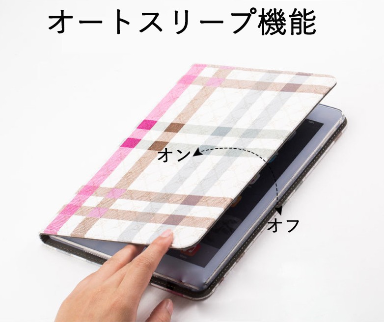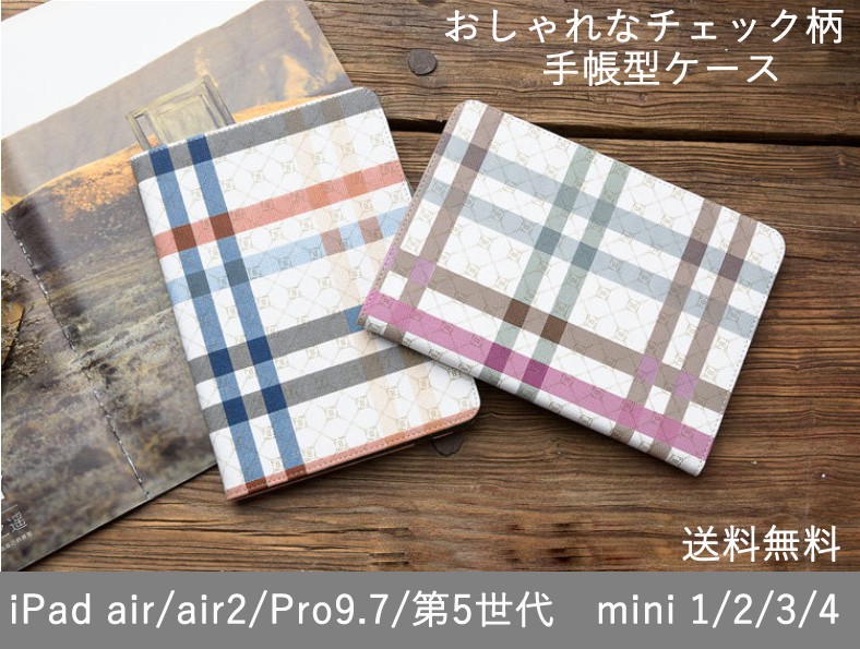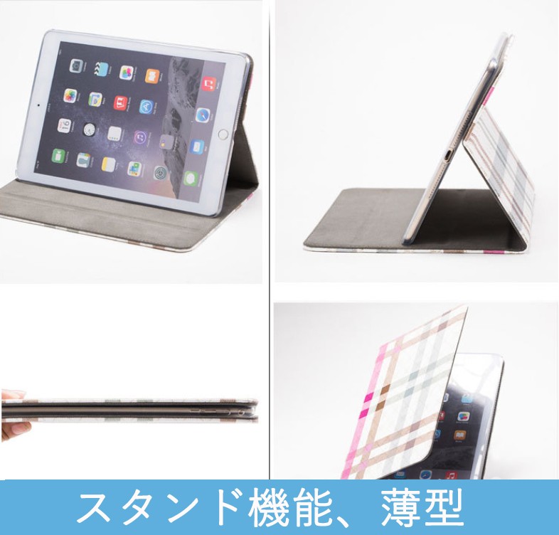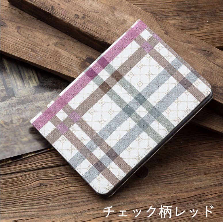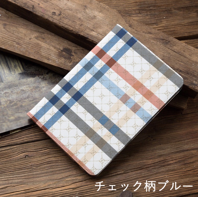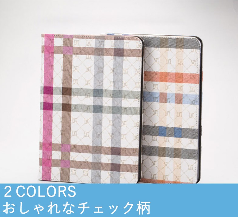 iPad多機種対応!おしゃれなチェック柄手帳型ケース。