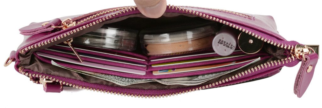 Cards, mobile, tags, coins, handkerchiefs, cosmetics, keys and so on.