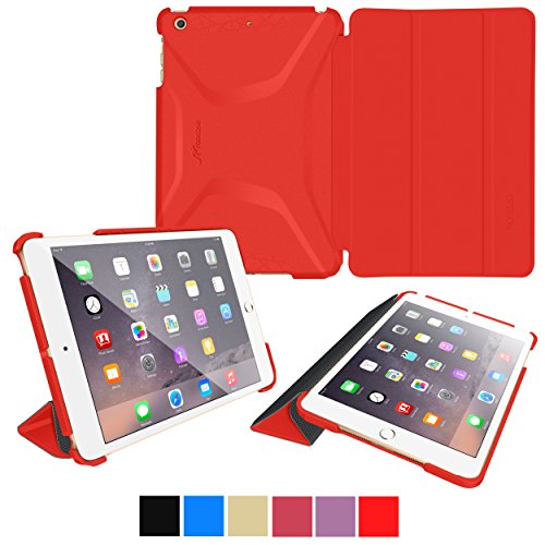 roocase iPad Mini 3 Case - Optigon 3D iPad Mini Slim Shell Case Smart Cover - with Sleep / Wake Function [Features Landscape and Typing Stand] for Apple Mini 3, 2 and 1, Red