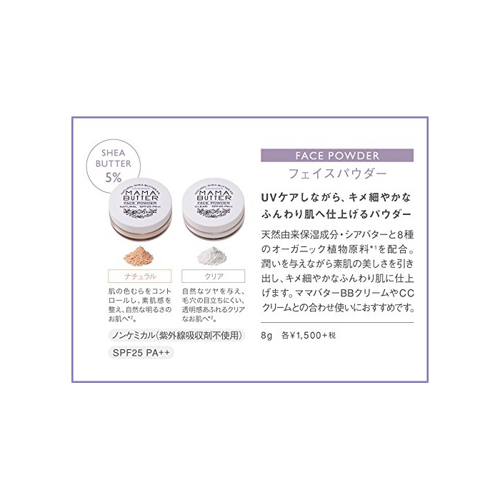 원본상품명: ママバタ? ナチュラル シアバタ? フェイスパウダ? クリア 8g
