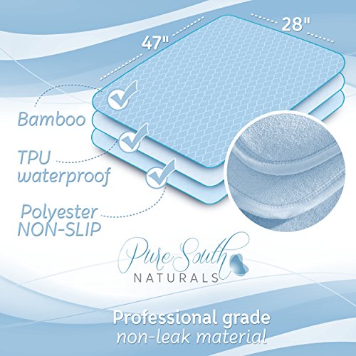 - Feature : Superior mattress protector and moisture absorber that is layered, extra soft and waterproof to sheild against damage to mattresses and bedding caused by incontinece or medical conditions. / Generously sized 28" x 47" and amazing comfort, this resuable personal care mattress pad is made with a blend of natural bamboo and cotton. Spreads evenly across beds, lounge chair, sofas and furniture to guard and avoid costly damage from moisture / Minimise the stress of excessive laundry, as beds stay dry and clean, with high density inner layers that offer supreme protection. Washer dryer friendly to save you money on expensive disposable bed pads. Comparable to Priva and SafeRest / Non slip to avoid folding and moving, this underpad is layered protection for a good night sleep. Four layers hold liquid away from skin to care and avoid irritation / Better than a plastic mattress cover that can be hot and sticky, it comes in a stylish and subtle blue for use either over or under bed sheets. Light weight to dry quickly or buy two for 20% OFF so one is always on hand