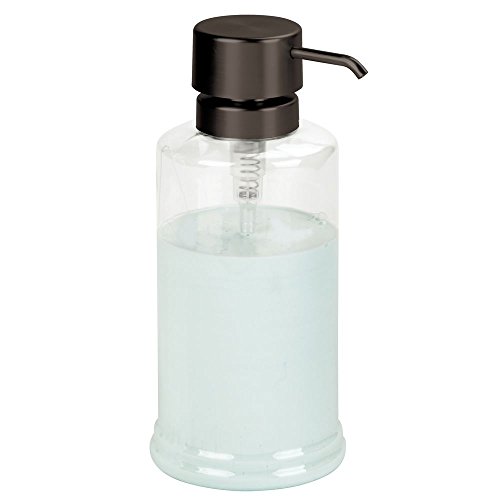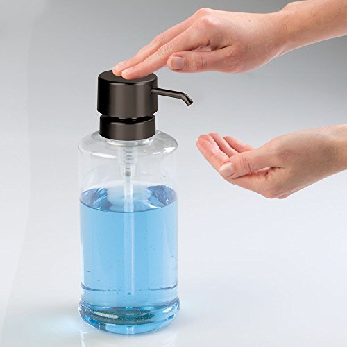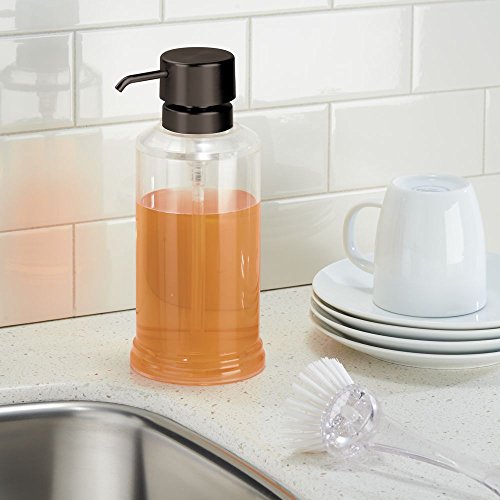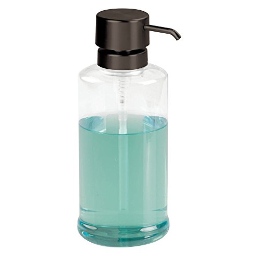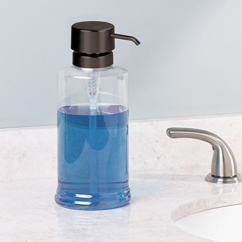 InterDesign Hamilton Dish Soap Or Mouthwash Dispenser Pump for Bathroom, Kitchen Countertops-Large, 34 Oz, Clear/Bronze, Bronze