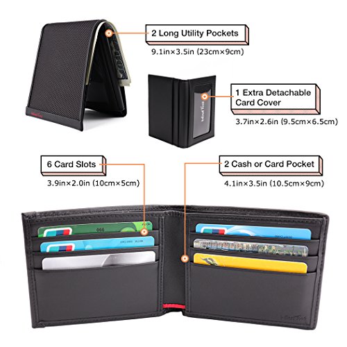-. Feature : MATERIAL - Made with the Finest COWHIDE LEATHER, this wallet is durable, soft and comfortable.Leather products will last a lifetime with the right care, so we recommend you avoid excessive exposure to water, heat and sunlight. / CAPACITY - Features a whopping 5 credit card slots, 1 clear ID windows, 2 slip-in pockets,2 long utility pockets. / CLASSIC DESIGN - Traditional bifold design Cowhide Leather Wallet is Simple classic design and easy to match suit, you can use for a long time. / TOUCH FEEL - Smooth wax processing, the touch of cowhide is soft. / GIFT BOX PACKING PACK - a perfect gift idea for your beloved man for birthday, anniversary, valentine's day, Father's Day, Christmas, New Year or another significant event.