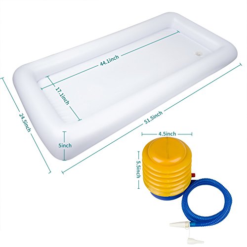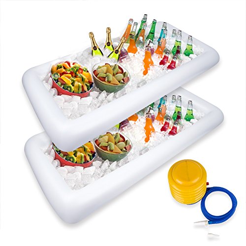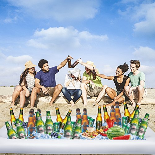 ★ No need to worry about how to keep your salads, fruits, dips, and drinks fresh and cool when you are throwing a party, camping, having a picnic,luau or BBQ with family and friends, or other occasions with a large gathering. ★ Each order comes with 1 air pump free ★ 100% Satisfaction Guarantee - We stand by our products. Guarantee 100% refund if you have any dissatisfaction on the quality of goods, please contact us, we are willing to send you a new goods or a refund Product Information * Inflatable Salad Bar Size: 51.5inch * 24.5inch * 5inch, one air pump size: 5.5inch * 4.5inch
