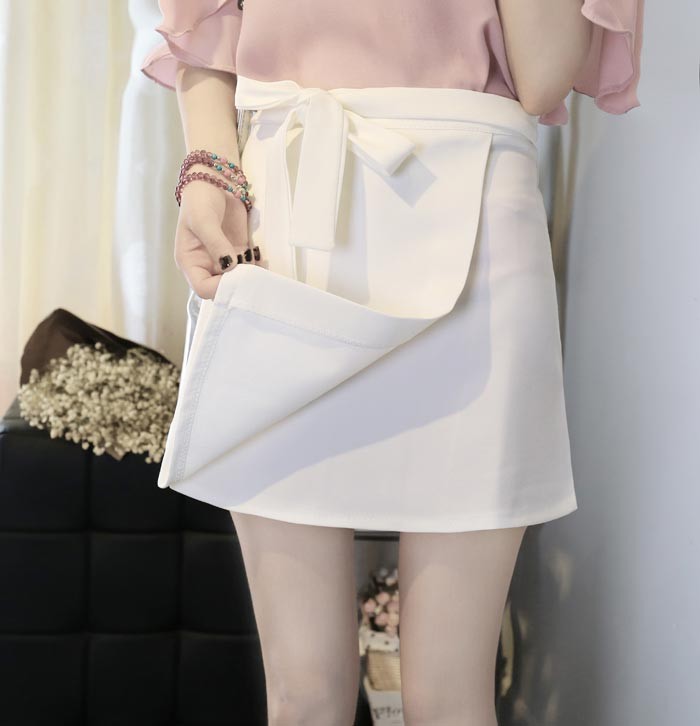 ウエスト右サイドの2本のボウタイを結んだデザインのショート丈スカート♪