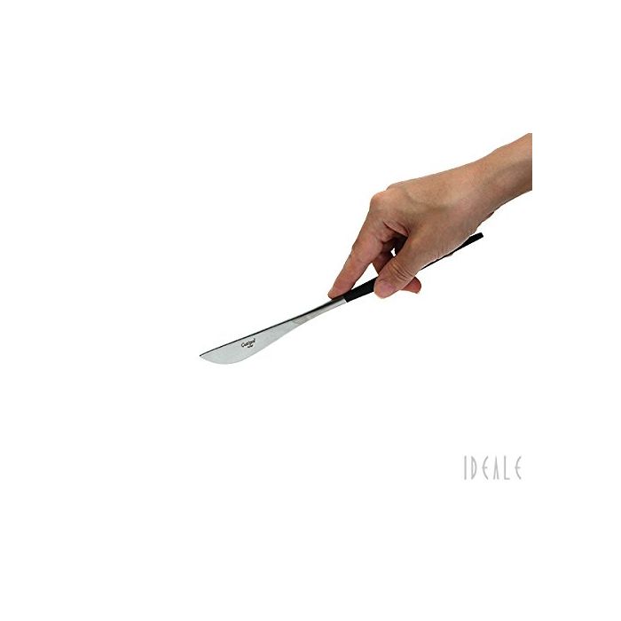 【 GOA(고어)】인기가 높 GOA(고어)시리즈는,매트인 인상의 커트러리.인간공학에 기초한 모던인 디자인은,스타일리시에 매우 멋쟁이.수지에 할 수 있는 무늬가 목제와 같은 온기를 떡,《사라리》라고 한 촉감에 손에 잘 친숙함 봅니다.스테인레스의 실버색에 블랙 컬러가 아주 멋진 커트러리는,식탁도 스타일리시에 연출해 줍니다.첨단이 작고, 칼의 부분이 둥근 디자인 나이프.손에 친숙함 보기 쉬어 사용하기 쉽다!메인의 요리는 물론,빵 케익 등의 디저트로도 추천♪