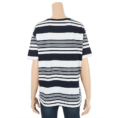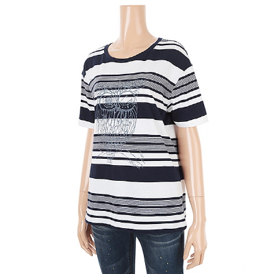 다양한 간격의스트라이프 배열의 조합과 부엉이프린트 원포인트로  캐쥬얼한 아이템