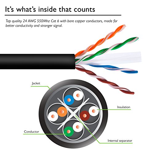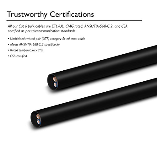 High performance Cat 6 cable, ETL listed, bulk Ethernet cable provides universal connectivity for wiring your home or office for high-speed network, in-wall rated (cm)