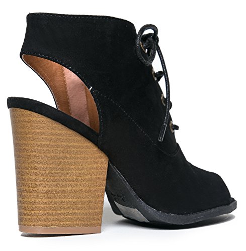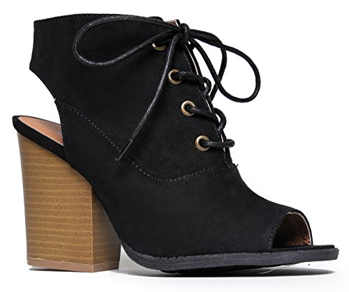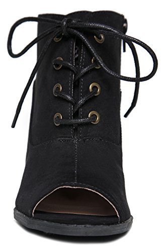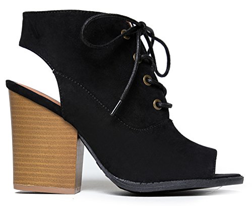 Binding : Apparel Product Description These vegan suede booties have a beautiful silhouette with it's peep toe opening and laced up front. Ankle boots feature a back cutout and a stacked, block heel that will be easy to pair with anything in your closet. 0