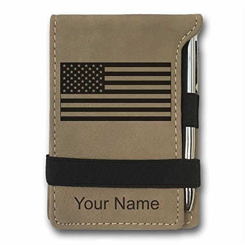 (SkunkWerkz)/Stationery Party Supplies/Stationery/DIRECT FROM USA/Mini Pocket Notepad - Flag of the United States - Personalized Engraving Included (Light Brown)