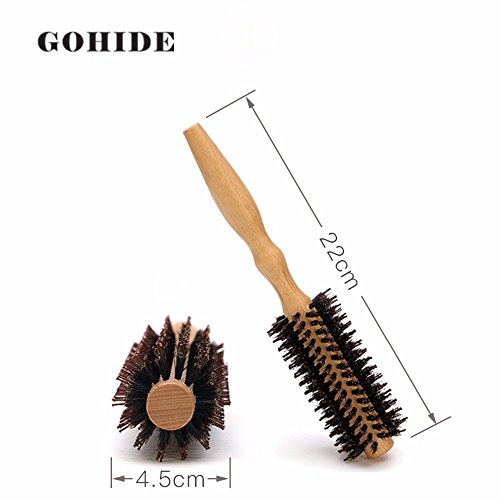 Gohide Wood Hair Brush Professional Portable Protective Curly Hair Comb Round Brush In Natural Wood Handle Bristle Anti-static Hairdressing Salon/Home Straight Line - Length 22cm diameter 4.5cm(M) XCX