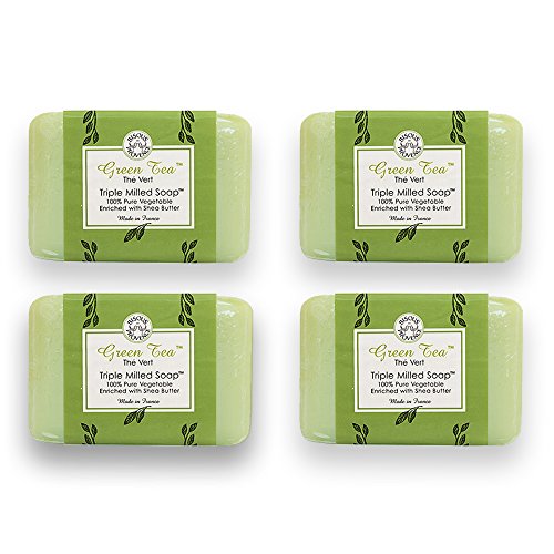 Bisous de Provence French Soap, Green Tea The Vert Triple Milled Soap enriched with Shea Butter, 100% Pure Vegetable Based, Made in France, Paraben...