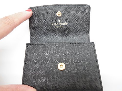 Binding : Apparel Product Description Kate Spade New York saffiano leather card case wallet Gold toned hardware with name brand license plate in front Front snap closure Open interior features custom fabric Approx. dimensions: 4 in (L) x 2.75 in (H) x 0.75 in (W) 0