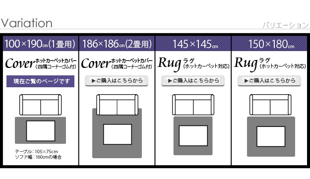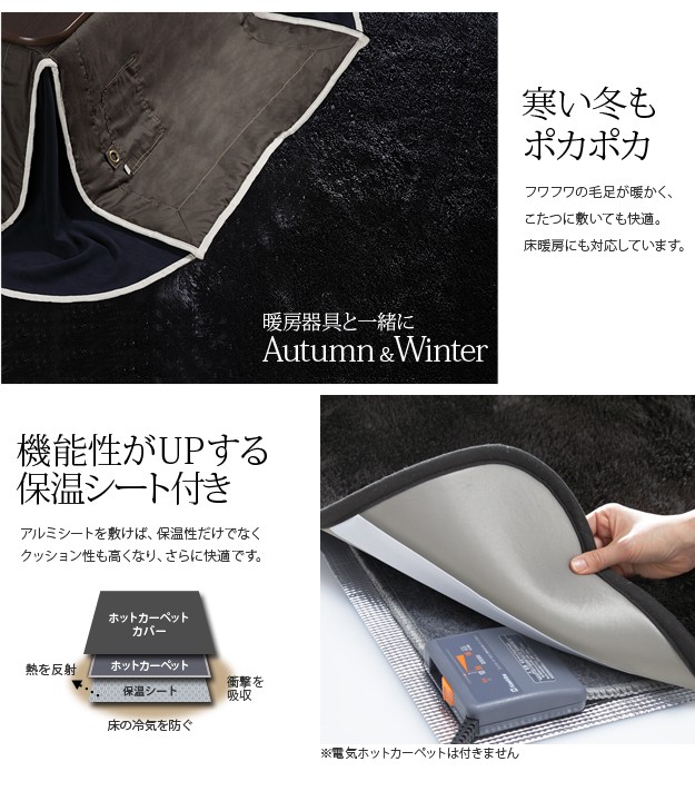 漆黒のホットカーペットカバー ジェッタ 1畳用 (100x190cm) 洗える 一人用 ラグ