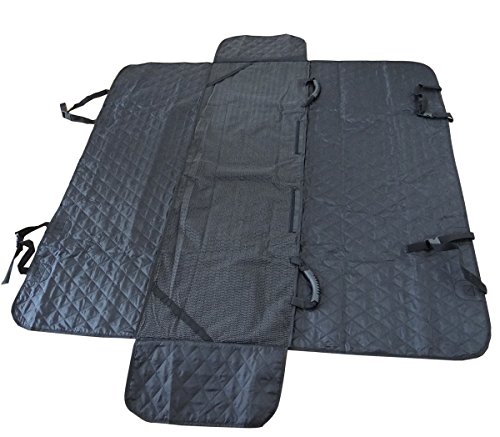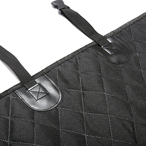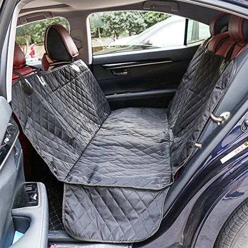 -. Feature : Full Protection for Your Pet During Driving: This dog seat cover is made of double layer waterproof heavy-duty oxford with padded cotton, slip-proof soft rubber backing, seat anchor fixation, all this give your pets a considerate protection when driving / Best Solution for Traveling: Dog car seat hammock is a barrier to help pets feel safe and reduce driving distractions, a must for individuals with leather seats. It is not only for small medium dogs, also perfect for large breeds. Suitable for not only pet, but also kids, human / Stain-proof Pet Seat Cover: Seat belt buckles opening and velcro closure for it protecting your leather seat perfectly from water, drink, spill, milk moisture etc. Retaining its shape and provides enough thick resistance against pet's nails, paws, hair. / Universal Fit: Measure size: 54*58" (L*W), it comes with length adjustable straps, wide velcro opening for seat belt buckles, available for most cars, trucks, automotives and SUVs / Easy to Install and Clean: Just snap the buckle straps around your headrests and tuck in the seat anchor. Simple damp cloth wipe away or vacuum .Spot clean is recommended for deeper cleaning, saving time, labor and dollar from car cleaning