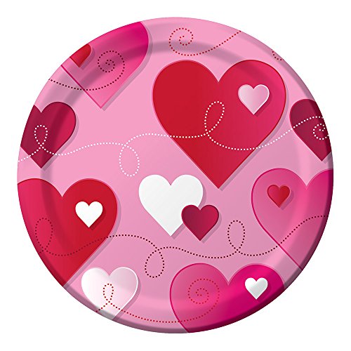 Creative Converting 410904 Sturdy Style 96Count Dessert Paper Plates Hearts & Swirls, Small, Red/Pink