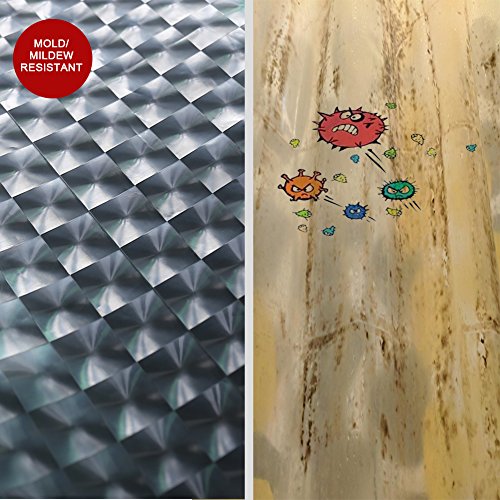 - Strong mold and mildew resistant, anti-bacterial EVA material keeps your shower curtain liner clean,bright and durable.