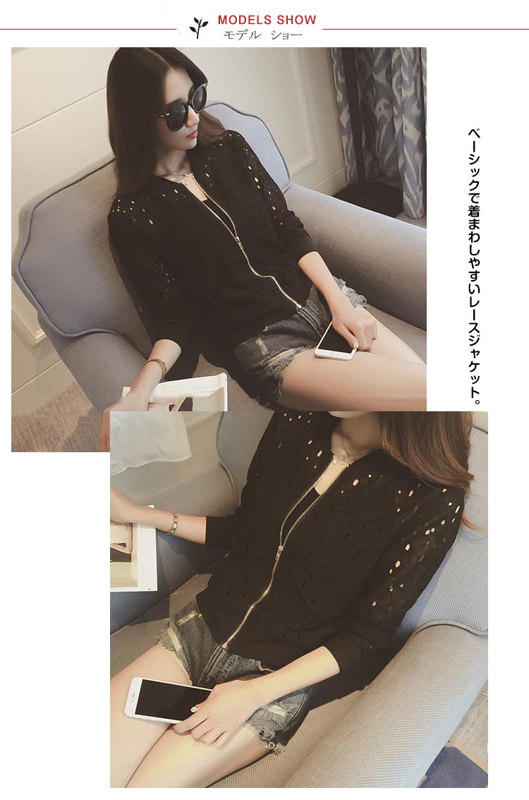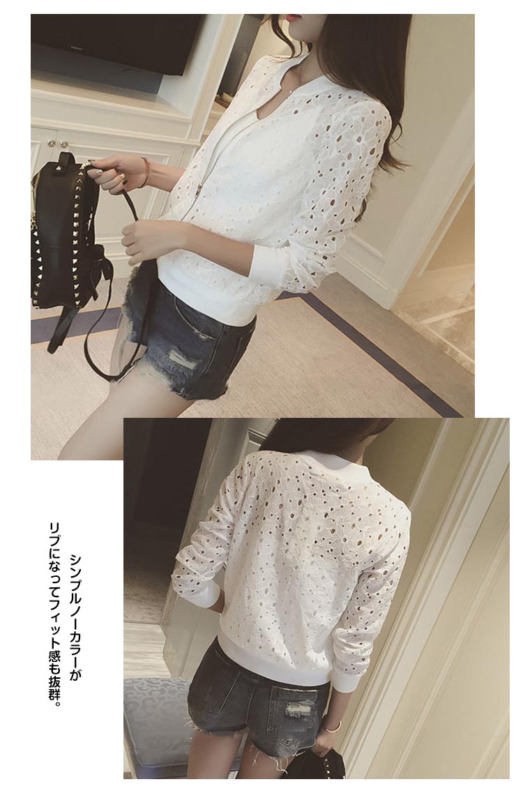 | ベーシックで着まわしやすいレースジャケット。フラワーレースデザインが大人女性らしい雰囲気を引き出します。フロントジップアップになって着脱ぎも楽々。シンプルノーカラーがリブになってフィット感も抜群。夏にチューブトップやビスチェに重ねて肌見せするのもオシャレ。 | |