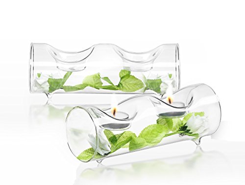 JoyJolt Set of 2 Double Clear Glass TeaLight Candle Holders Centerpiece TeaLight Holder