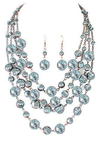 -. Binding : Jewelry -. Brand : Lucky You -. Department : womens -. Feature : 16 inch four strand mottled patina green teal bead layered bib necklace on patina-finish chain with copper-tone findings. / An additional 2 inches of wearable length is available via extender chain. Closes with a lobster clasp. / Depth of drop on the bib portion of the necklace measures approximately 2 1/2 inches when on. / Matching dangle drop earrings measure 1 3/4 inches in length as measured from the top of the ear wire. -. Label : Unknown -. Manufacturer : Unknown -. Model : SC5632OG -. MPN : SC5632OG -. PartNumber : SC5632OG -. ProductGroup : Jewelry -. ProductTypeName : FASHIONNECKLACEBRACELETANKLET -. Publisher : Unknown -. Studio : Unknown -. Title : Mottled Patina Teal Green Finish Bead & Copper-Tone Multistrand Layered Necklace 16” w/ Dangle Earrings
