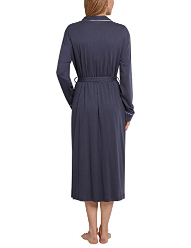 graphit-grauer Damenbademantel aus der SCHIESSER-Serie "Rhapsody" mit weisser Paspellierung an der Blende und an den Armabschlussen innen liegender, praktischer Aufhanger und zwei aufgesetzte Taschen Gurtel mit Schlaufen und innen liegendes Bindeband Gesamtlange: 120 cm in hochwertiger Interlock-Qualitat