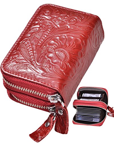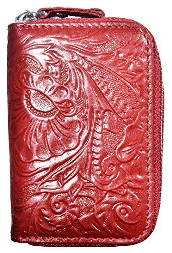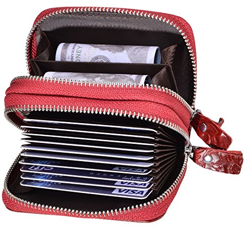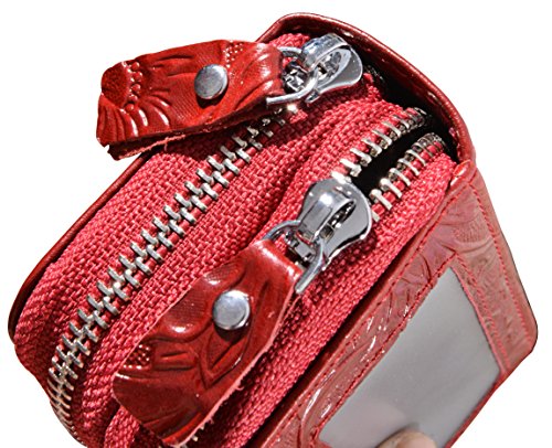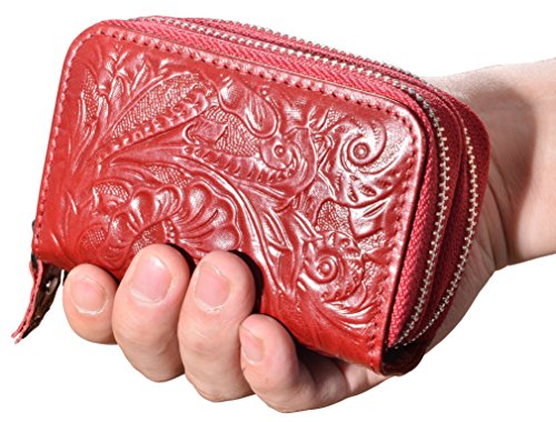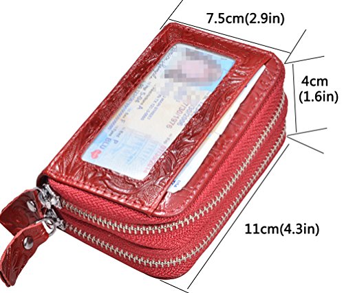 - Material & Size: Made of 100% floral genuine cowhide leather, durable and fine texture. Lined in RFID fabric, and equipped with smooth silver zipper. 4.3"*2.9"*1.6"(11*7.5*4cm), it can tuck in your purse with ease, or just use it alone for an going out.