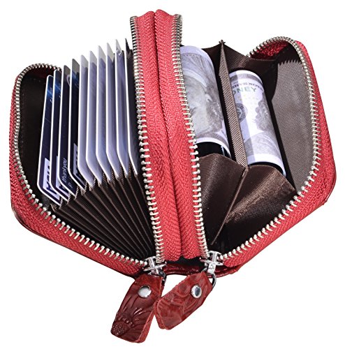 Easyoulife Womens Genuine Leather RFID Secure Zip Credit Card Wallet Small Purse