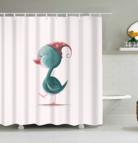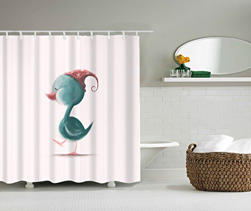 Get Orange Cute Bird in Bathroom Funny Home Decorations for Bathroom Art Prints Kids Decor Polyester Fabric Fun Shower Curtain pink undertone72X72Inch