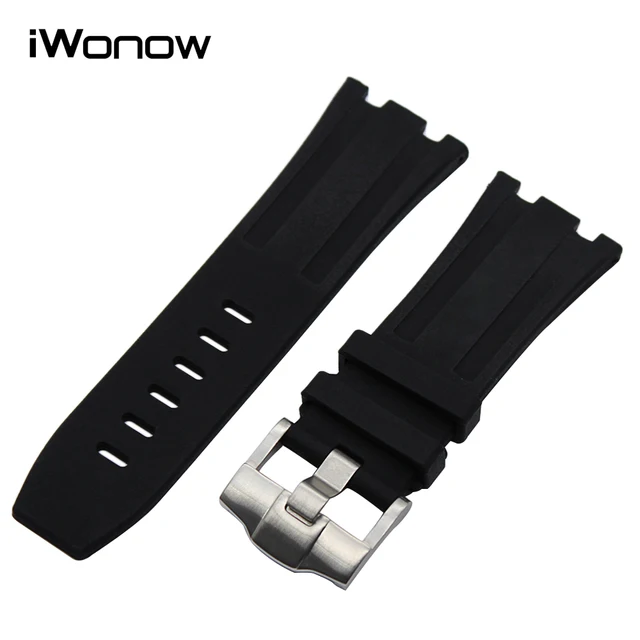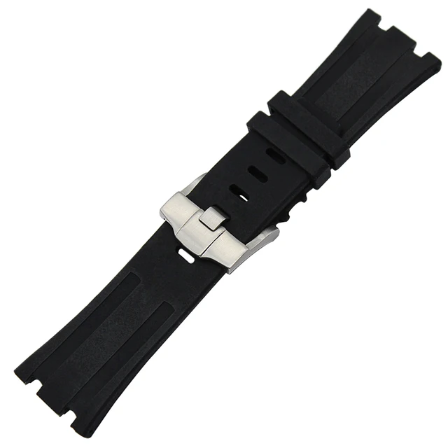| [해외] 28 미리메터 실리콘 고무 손목 AP 오데 마 피게 로얄 오크 오프 쇼어 시계 밴드 스테인레스 스틸 버클 스트랩 손목 팔찌 |