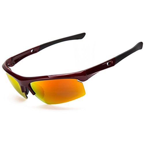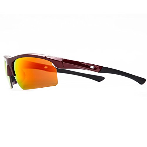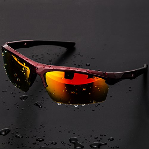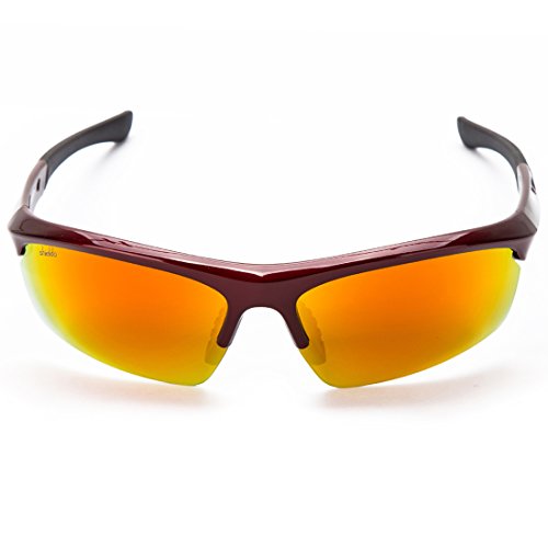 Shieldo Polarized Sports Sunglasses For Men And Women Shooting Running Cycling Fishing, Mirrored Integrated Polarized Lens Unbreakable Frame SDH003(Red-Orange)