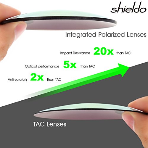 INTEGRATED POLARIZED LENSES - Shieldo is the FIRST company to introduce the integrated polarized lens, while low-end brands are still using multi-layer TAC bonding lenses. They can effectively prevent the dizziness that sometimes results from wearing TAC lenses, and are highly resistant to impact cracks. We are more suitable for wearing in high-impact sports activities. Therefore, for your safety and protection, we do not recommend using cheap TAC sunglasses!