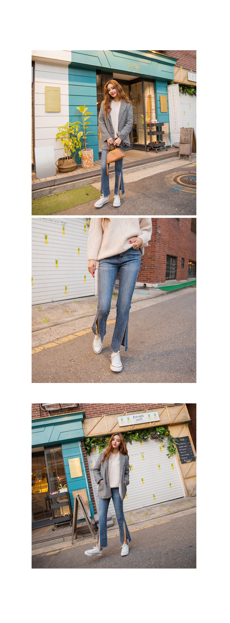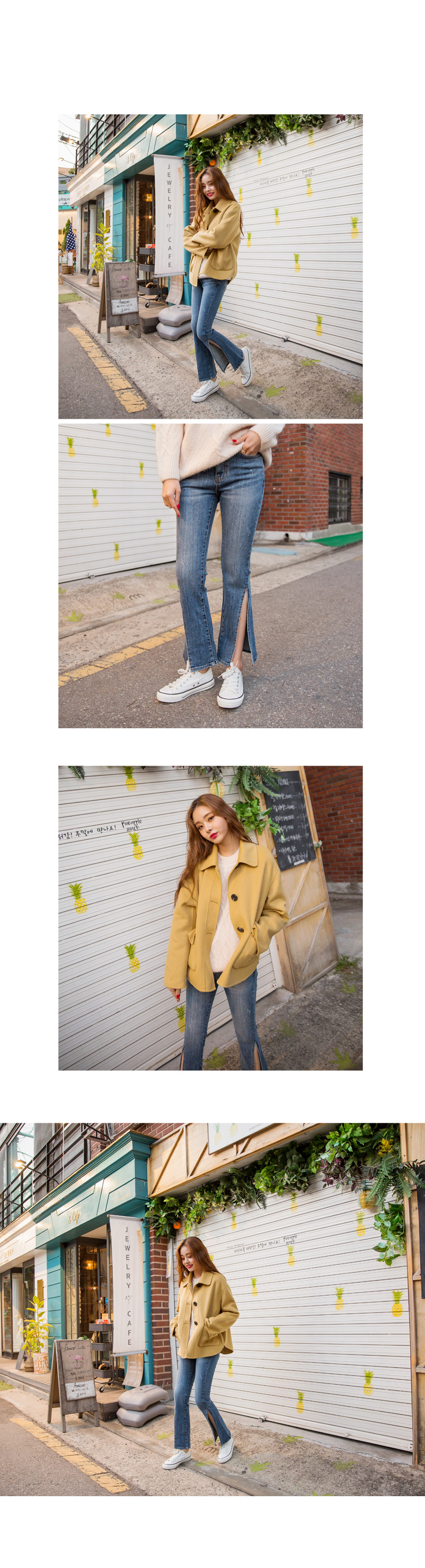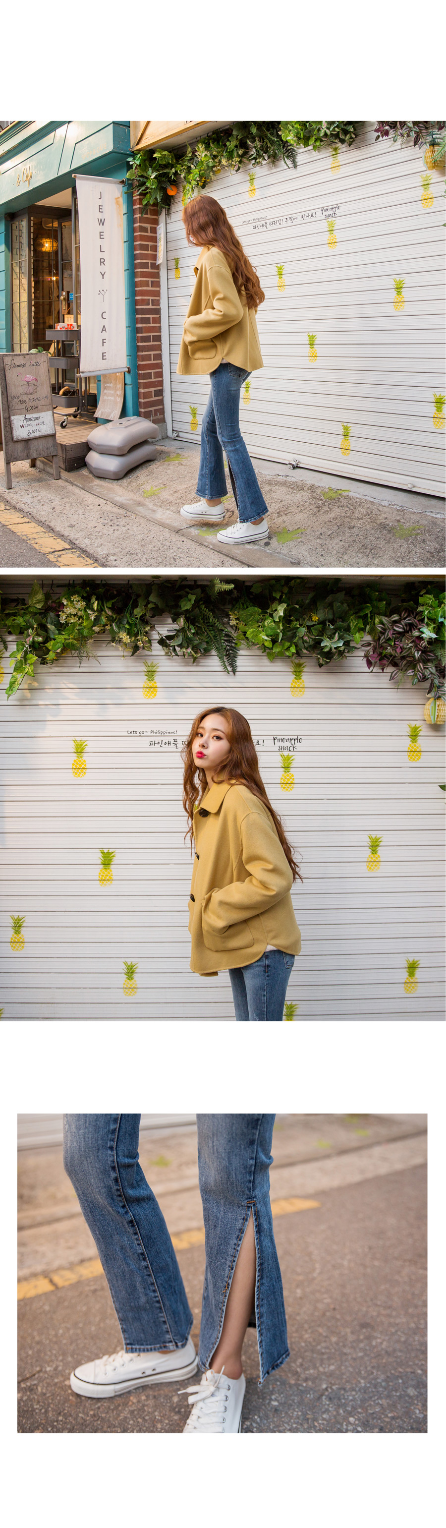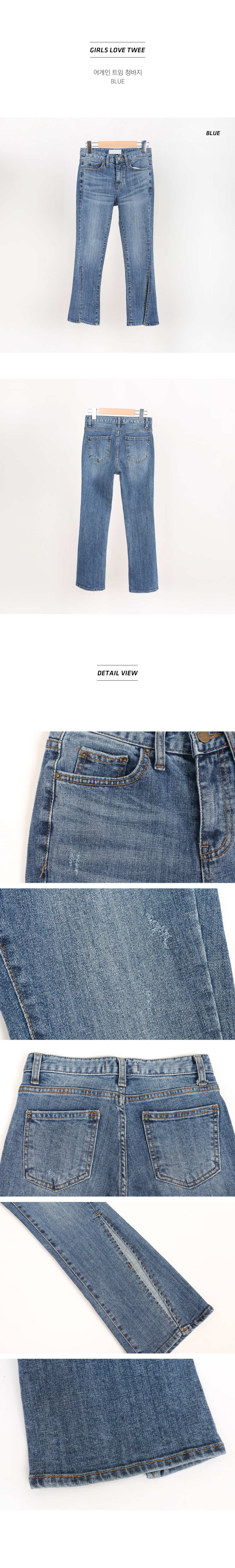"어게인 트임 청바지"유니크한 디자인의 데님팬츠 소개해 드릴게요깊은 사이드 트임이 포인트가 되어심심한 코디에 활력을 넣어주는 아이템이에요!세미 부츠컷으로 제작되어 슬림한 라인을 연출해주고스타일리쉬함을 UP시켜 드렸답니다^^조금 더 쌀쌀한 날씨에는 롱부츠나 앵클부츠와 매치하여걸을 때마다 살랑살랑 보이게끔 코디하시면더욱 멋스러운 룩을 완성하실 수 있을 거예요 :)