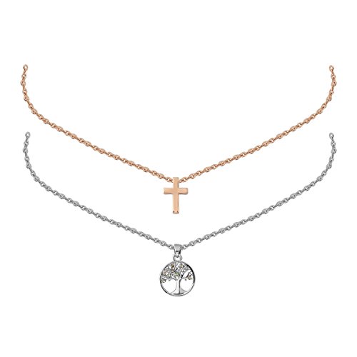 -. Title : Fresher Tiny Children Necklace Tree of Life Simple Cross Small Pendant For Boy Girls- 2 in 1 Set