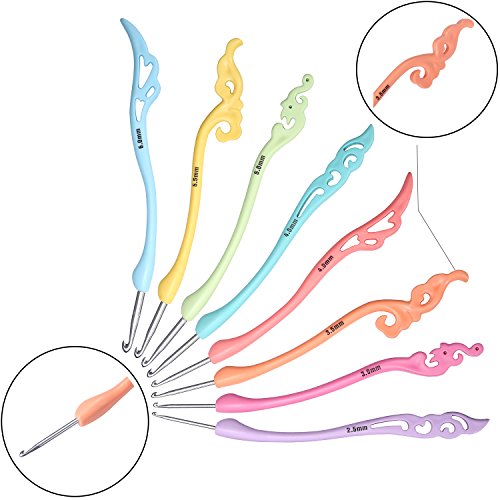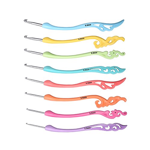 [UNIQUE DESIGN HANDLE]:8pcs Color Coded, Non-Slip Handles Hooks,The hook groove is deep enough to generously catch the yarn. The point is just right, not so sharp as to split the yarn.