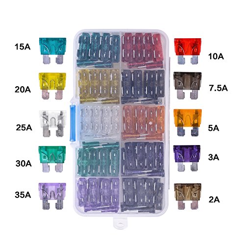 - MULTI-PURPOSE- This fuse kits set includes 100 pcs regular blades fuses, 2amp, 3amp, 5amp, 7.5amp, 10amp, 15amp, 20amp, 25amp, 30amp, 35amp, each has 10 pcs. Can be used on your car, truck, SUV, boat, motorcycle, camper/RV, ATV, UTV, golf cart and other electrical devices