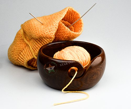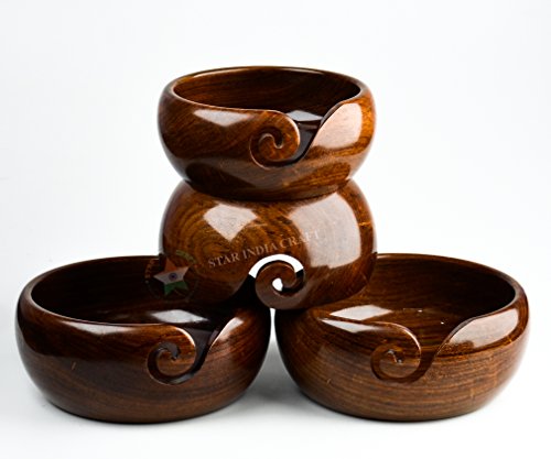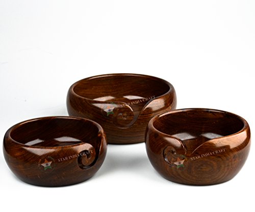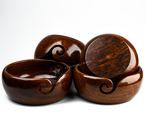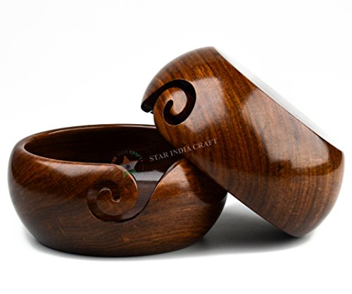 Premium Handmade Wooden Yarn Bowls for knitting & Crocheting by STAR INDIA CRAFT, Made from Sheesham Wood - Heavy, Sturdy - A Perfect Wooden Yarn Holder for Knitting & Crocheting (6 x 6 x 3" Inches)