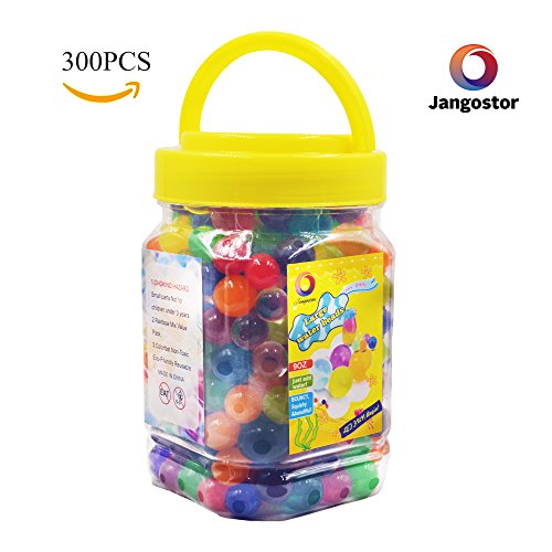- High-capacity: 9OZ, 12 Colors,300pcs. Jangostor water beads start as tiny hard balls but it take up to 24-36 hours to become 1.8 ~ 2.2 inch bouncy and beautiful jelly water beads when you add water