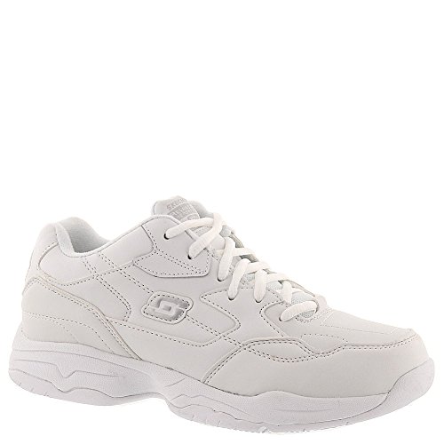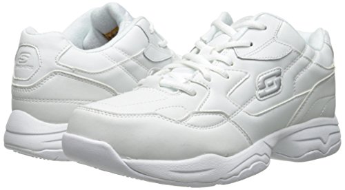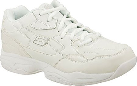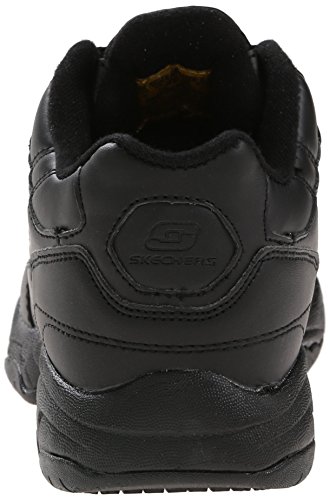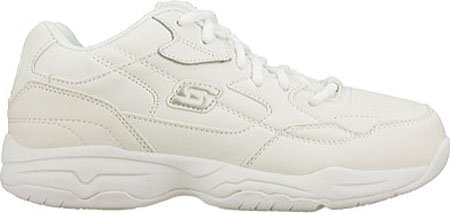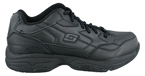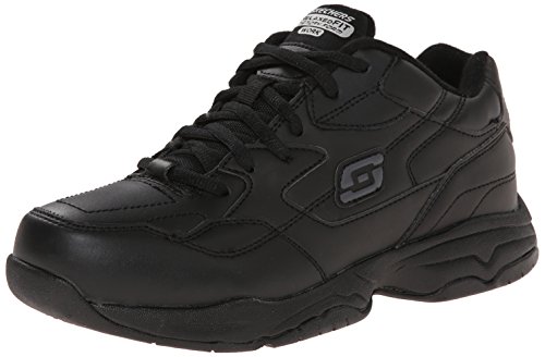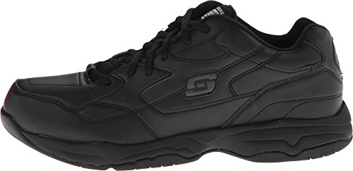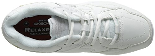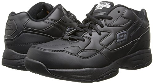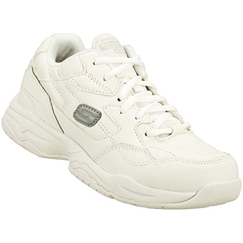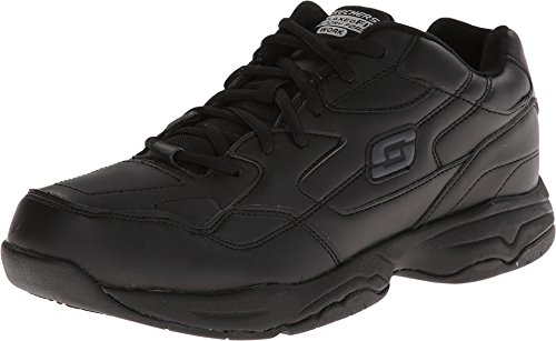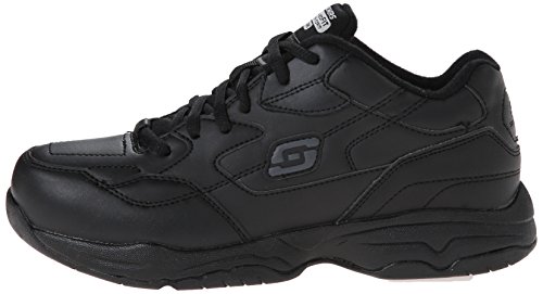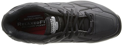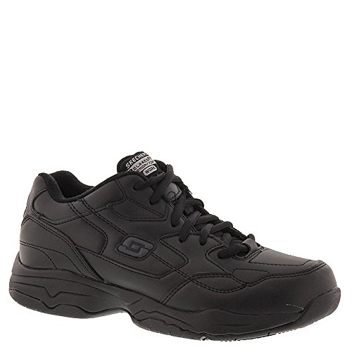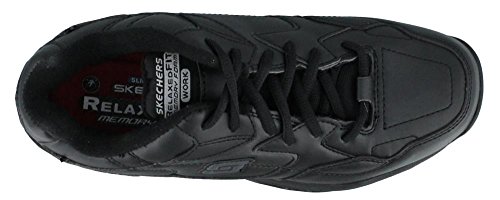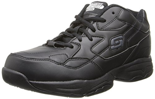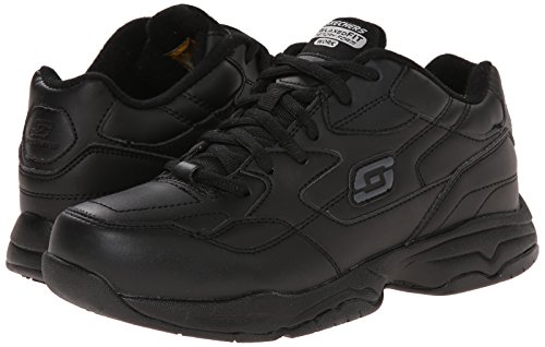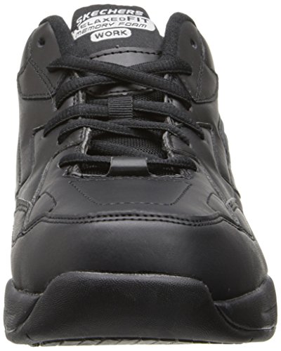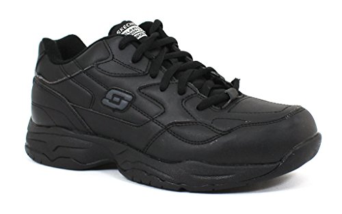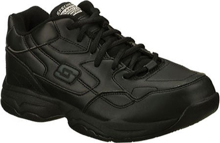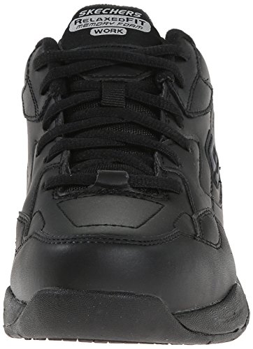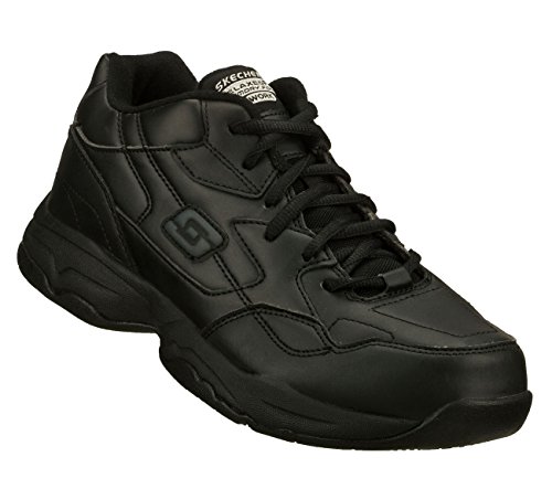 Product Description Safety and comfort ease you through your shift in the Skechers Work Relaxed FitSmooth faux leather synthetic upper Lace up sporty casual comfort work slip resistant sneaker design Stitching accents Padded collar and tongue Memory Foam topped cushioned comfort insole 0