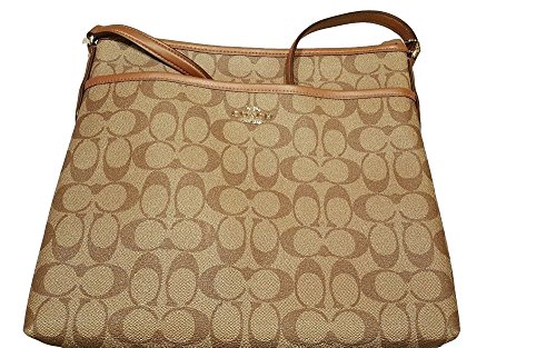 -. Feature : Signature coated canvas / Zip-top closure, fabric lining / Inside zip, cell phone and multifunction pockets / Long strap with 21 1/2 drop for shoulder or crossbody wear / 11 3/4 (L) x 10 1/4 (H) x 2 (W)