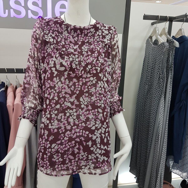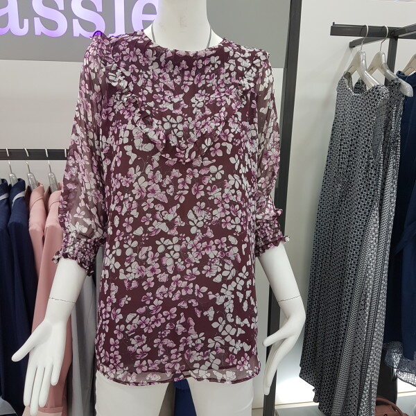 와인색상의 꽂무늬의 쉬폰 블라우스가을 바람 따라 하늘하늘 거리는 신상 아이템 넘나 이쁨