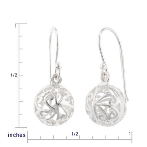 -. Binding : Jewelry -. Brand : Amazon Collection -. Color : silver -. Department : womens -. Feature : Creative, distinctive and a wearable work of art / This item is rhodium plated so it will not tarnish / Use a polishing cloth to clean / Imported -. Label : Amazon Curated Collection -. Manufacturer : Amazon Curated Collection -. Model : T3011554 -. MPN : T3011554 -. PartNumber : T3011554 -. ProductGroup : Jewelry -. ProductTypeName : FINEEARRING -. Publisher : Amazon Curated Collection -. Studio : Amazon Curated Collection -. Title : Sterling Silver Filigree Open Ball Drop Earrings