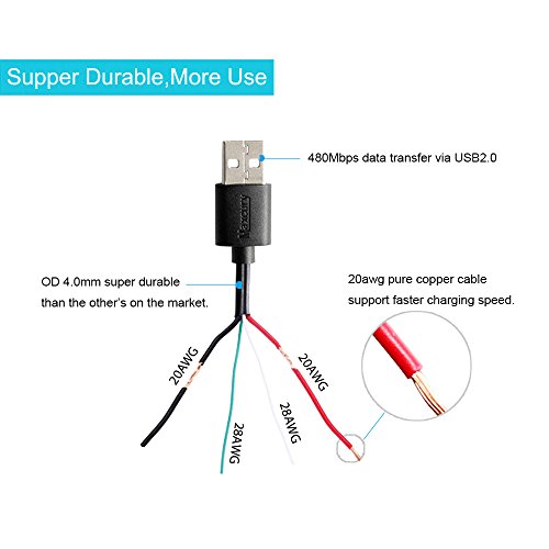 Quick Charging & Sync: 20AWG USB cables support faster charging speed and 480Mbps data transfer via USB 2.0 (backwards compatible), 7% faster charging speed than others.