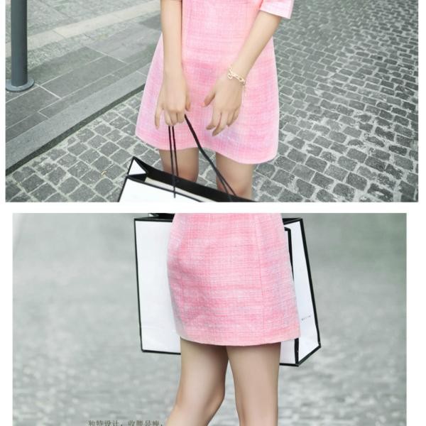 デコルテ部分スッキリ!スクエアネック 五分袖スリムワンピース ピンク/ S
