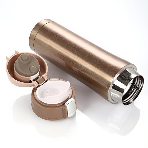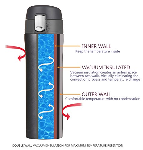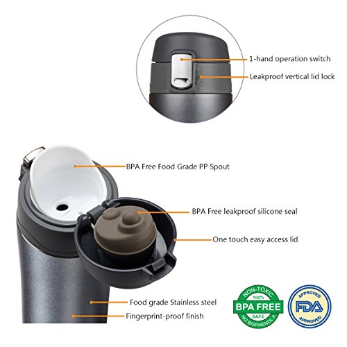 A True "No-Spill" Travel Mug - Keeps Drinks Hot & Fresh For Hours. When it comes to so-called leak proof travel mugs, you've been burned. LITERALLY. There's nothing worse than heading into a meeting with coffee stains all over your shirt! But with the LifeSky insulated travel coffee mug, leaks are a distant memory. The unique vertical safety lock on the lid seals in your liquid securely to prevent leaks and accidental spills. Thanks to innovative vacuum insulation technology, air is sucked out to create a vacuum between the double walls, minimizing the effect of outside temperature. Your coffee or tea stays piping hot, fresh, and delicious for up to 6 hour sand cold drinks stay chilled. The LifeSky mug looks great, too! Crafted from premium stainless steel, it comes in an array of colors, with an attractive baked finish that resists fingerprints. Whether you're going camping, hiking, or just have a long commute, this thermos is the perfect travel companion! - Double-wall construction for excellent insulation - Convenient one-hand operation - Push-button flip-top lid - Food-grade stainless steel - Lid locks to prevent accidental spills - Keeps liquids hot for up to 8 hours - Great quality, solid and sturdy - Holds 16 oz. of liquid - BPA-free - Drink from it directly, or pour into cup - Easy to clean - Fits most car cup holders (2.6" D, 9" H) - Great gift for men & women. Click "Add to Cart" to buy now!.Feature