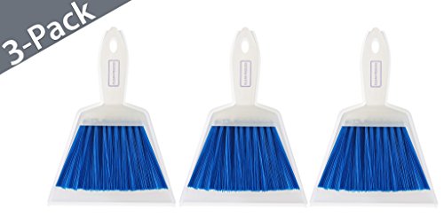 - 3 small blue & white brooms and dust pans in each package