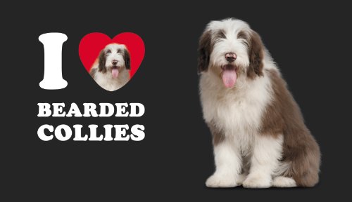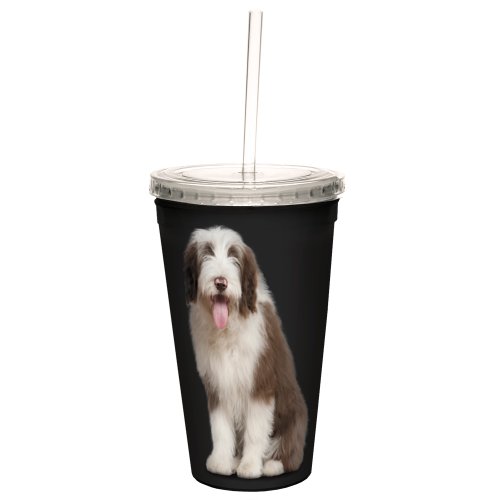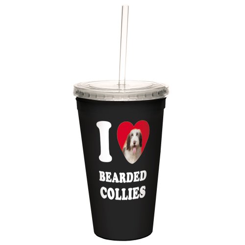 Tree-Free Greetings CC35004 I Heart Bearded Collies Artful Traveler Double-Walled Cool Cup with Reusable Straw, 16-Ounce, Tan and White